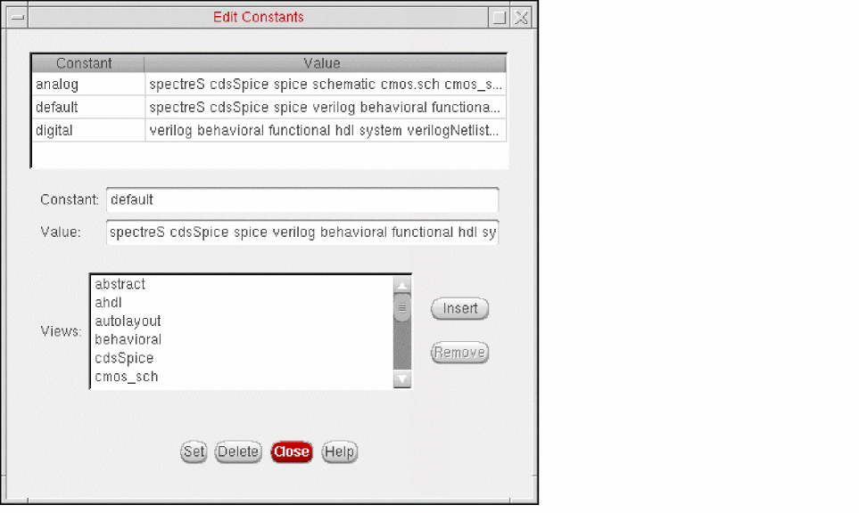 The constant name is displayed in the Constant field and its views are displayed in the Value field. - To add a view,