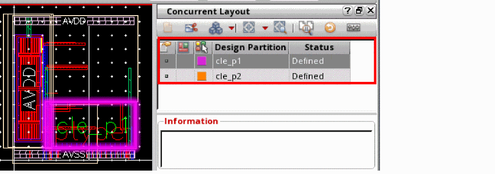 The Design Partition Management pane shows the information regarding the design partitions that have been created in the top design.