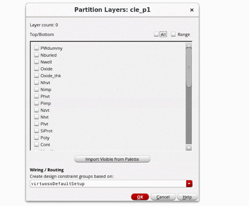 - Clear the check boxes of the layers you do not want to include in the design partition.