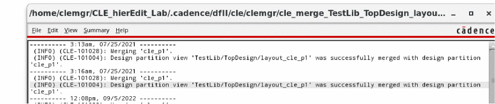 When the merge process is in progress, manager should make changes only in the design partition view. Any direct edits to the top design during merge are discarded when the top is reverted to the previously unmerged state.