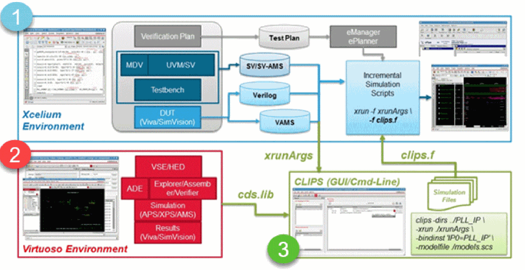 The illustration given shows how CLIPS works with Virtuoso and Xceliumâ„¢ Logic Simulator: