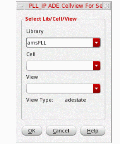 Enter the value to the form that is displayed.Different forms are displayed to specify the ADE cellview or model files. For ADE cellviews, the <inst-name> ADE Cellview for Selected Instances form is displayed, as shown below.For Config Netlisting Model files, the Setup Model form is displayed.