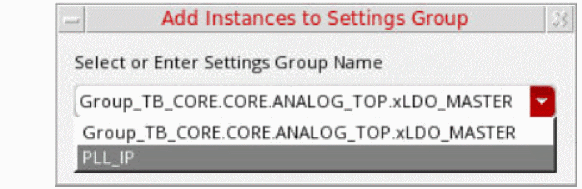 In the Select or Enter Settings Group Name drop-down list, select the name of the group to which you want to add the instance.
