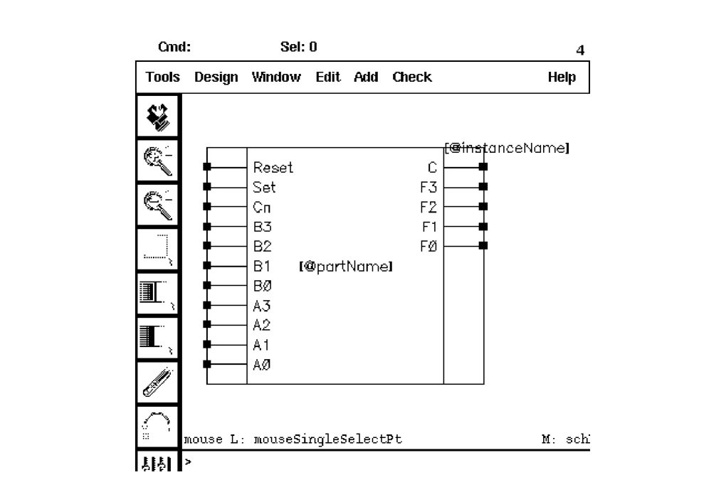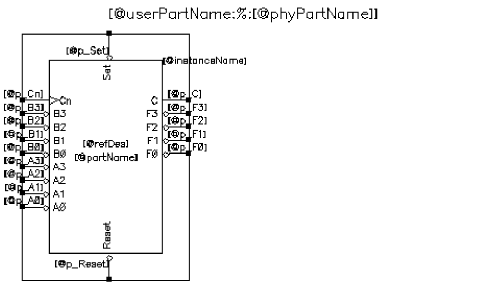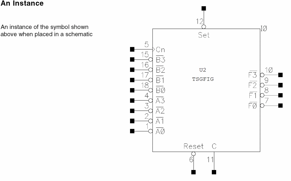 All symbols generated by TSG are rectangular in shape. The default origin of a symbol is located at the upper left pin terminal. The following symbol was created by TSG.