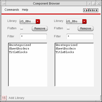 You can use the Component Browser to view and select the contents of the libraries you specify in your cds.lib file. As an alternative, you can use the Library Browser.