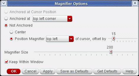 This will display the Magnifier Options form, which will be synchronized to reflect the magnifier settings currently displayed in the window.