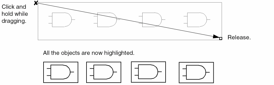This functionality is useful for commands that involve left mouse drag, such as drawing a rectangle shape. To set the opposite corner of the selected box or rectangle, click the left mouse button again.