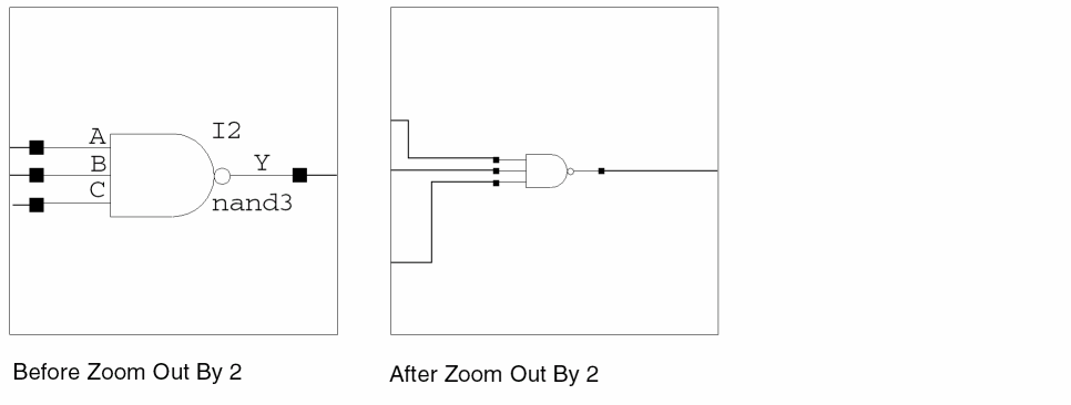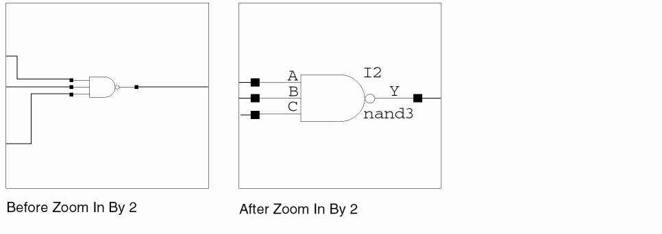 Use the Copy Window command to see the same cellview from different zoom and pan settings simultaneously. This feature lets you work in one area of the cellview and still have a reference window showing the entire cellview.