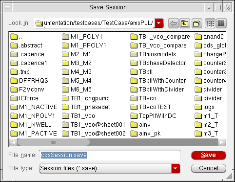 You can use a text editor to edit the variables in the defaults file. You can store the display of your design window (including all window positions, customized settings, contents, window sizes, zoom levels, and design hierarchies) when you exit the current session. You can store the current session by selecting a command from the CIW. You can also preset session defaults and variables by editing the.cdsenvfile.