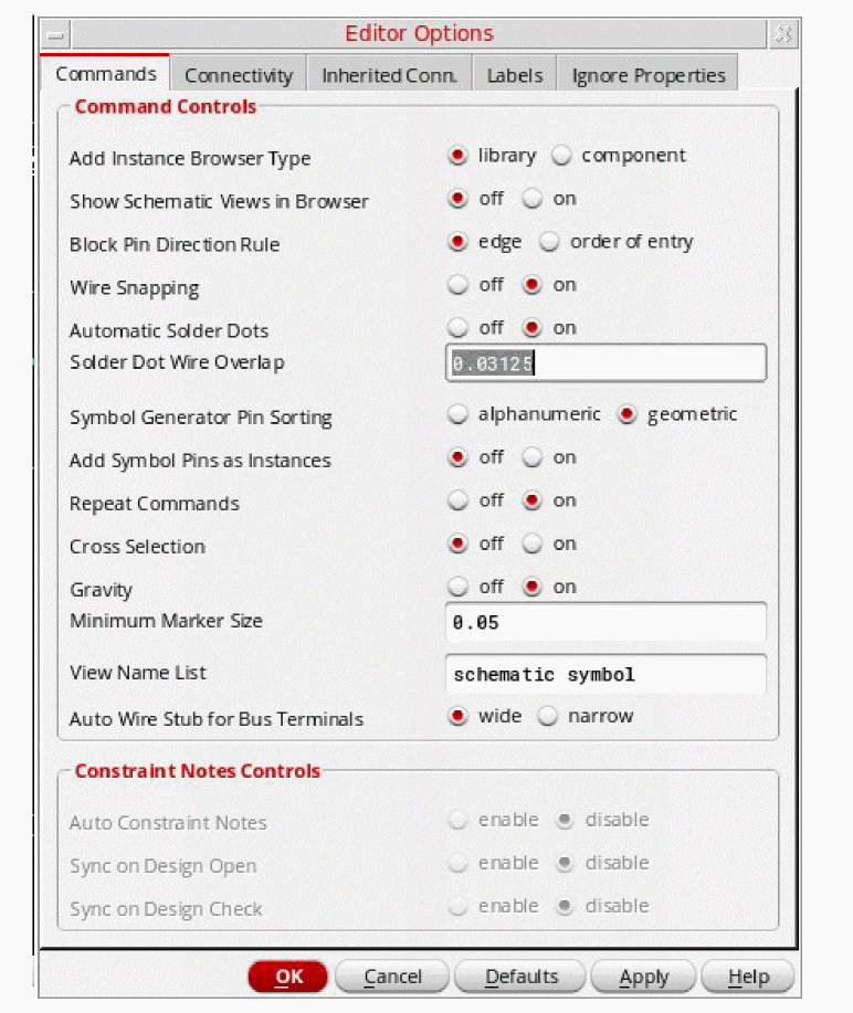 You can change general options for the schematic editor by using the Options – Editor command, which opens the Editor Options form.