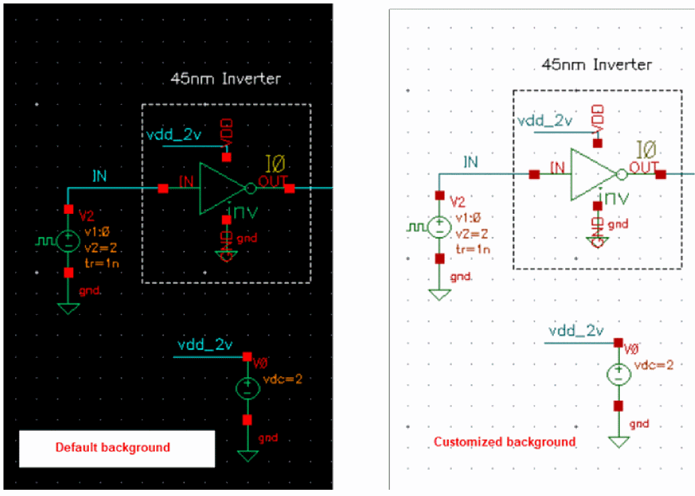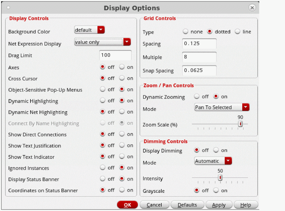 You can change the appearance and the behavior of the Virtuoso® Schematic Editor by using the Options menu in the schematic window, symbol window, or Command Interpreter Window (CIW). In general, you can choose a preference once you are in a session. When you find a desired behavior, you can make it the default for the product for that session.