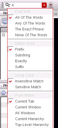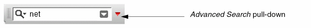 The Advanced Search pull-down is located to the far right of The Search Toolbar and The Search Assistant Pane, and provides the following commonly used search options to refine your search results.