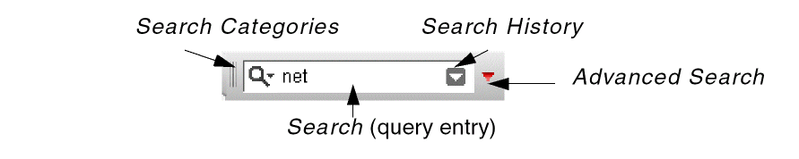 When the Search toolbar is inactive, the word Search will be displayed in gray text in the entry field (alternatively, the current category will be displayed). As search queries are entered in the Search Query Entry field, results will begin to display immediately in the Search History/Results Pull-Down.