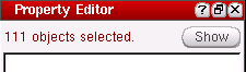If more than a specified number of object selections are made in a single selection (either through manually selecting objects or using Edit – Select – Select By Filter), in the current design canvas, the Property Editor will enter lazy display mode. That is, rather than automatically attempt to display property information for all the currently selected objects, the Property Editor will inform you of the number of objects selected and provide an option to Show their associated values, if required.