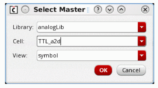 In the Select Master form edit the instance master Library, Cell, and View option settings as appropriate.