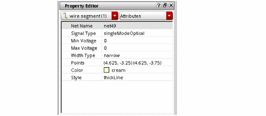 You can view or edit optical signal types on pins and wires in the Property Editor assistant.