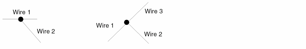 If you draw two intersecting wires in a T configuration, the schematic editor automatically connects the wires.