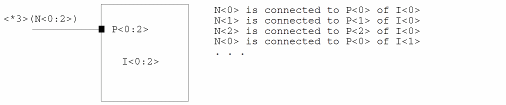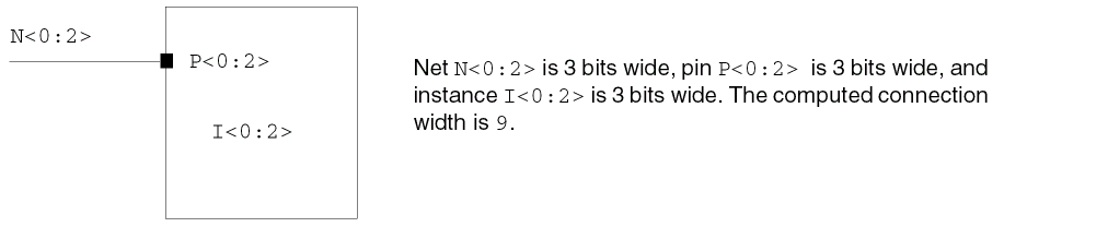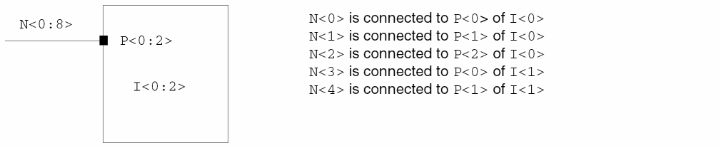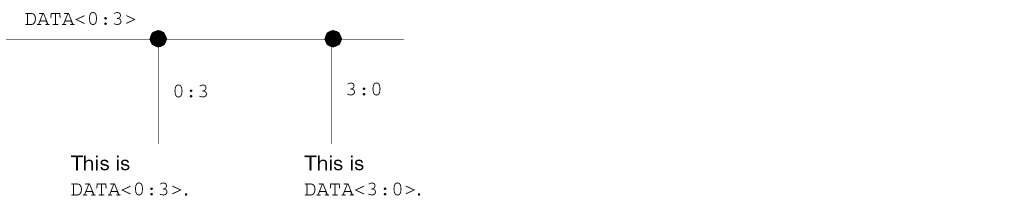This example uses the base name A. The 0 to the left of the colon and the 3 to the right of the colon indicate the numbered range (0 through 3), which names instances A<0>, A<1>, A<2>, and A<3>.