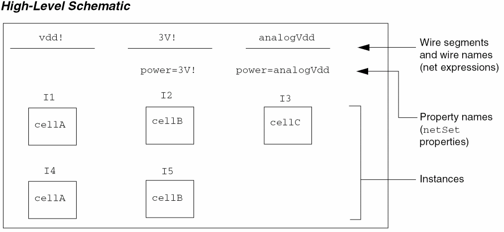 The extractor also ignores schematics where the schType property is set to noSchEdit. This property indicates that a schematic should not be processed by the schematic checker, geometry management system, and so on and is useful for generated schematics with special or incomplete connectivity or graphics.