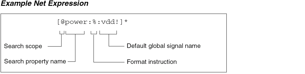 The default name in a net expression label must denote a single-bit (scalar), global name. For example,