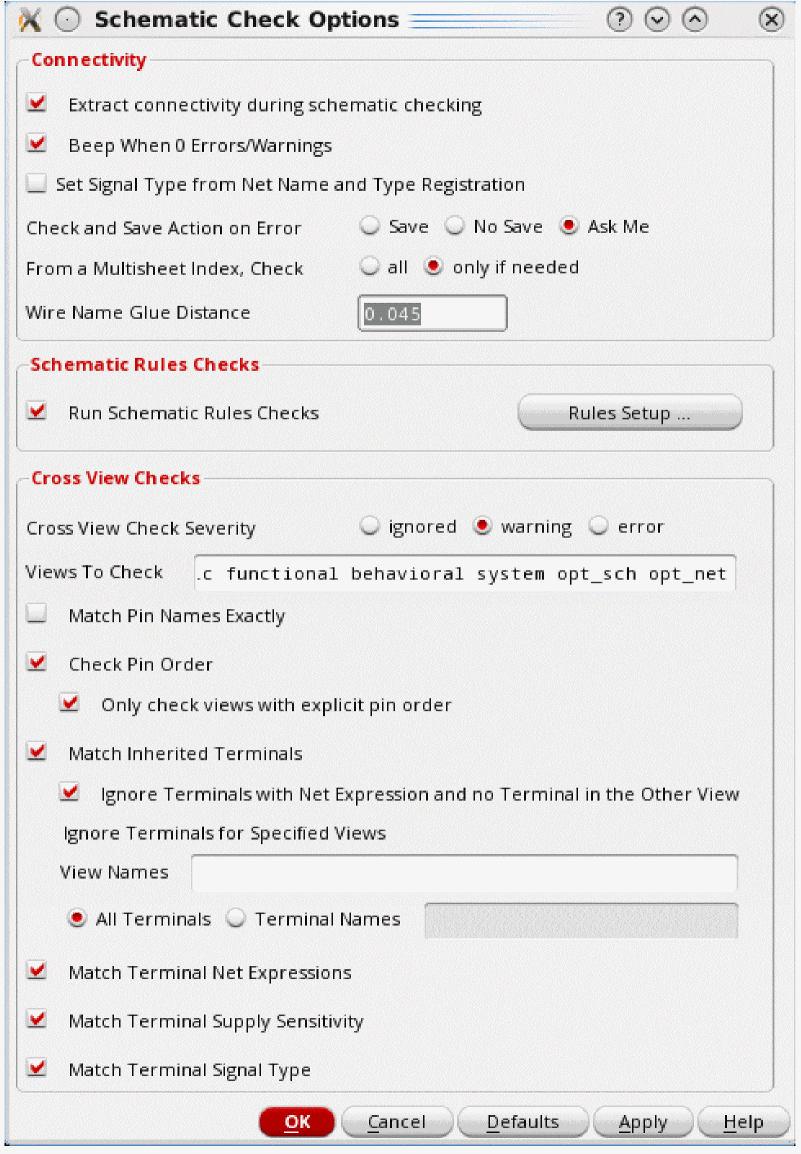 Schematic Check Options (form)