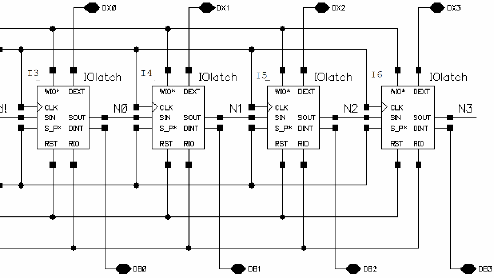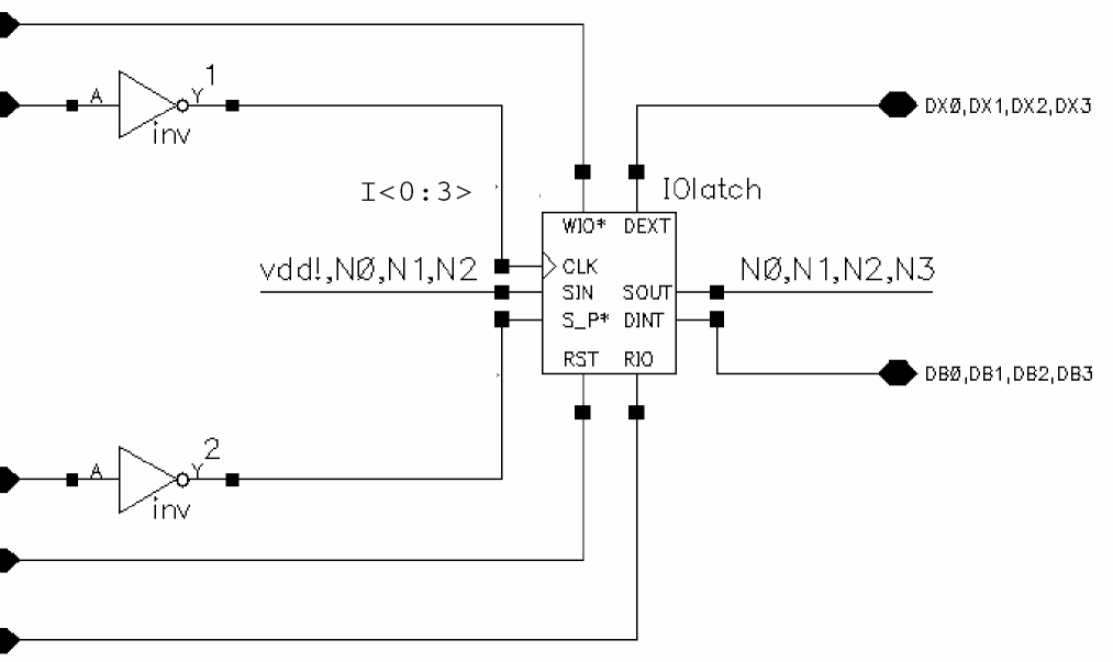 This schematic shows one IOlatch iterated four times: I<0:3>. Compare this with the previous schematic.