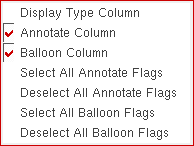 - Deselect All Annotate Flags: Deselects all the checkboxes in the Balloon Column on the Annotation Setup form.