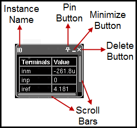 - cdsName: Displays the Instance Name on the schematic. You can choose to display the instance name on schematic or on simulation from the drop-down list box.