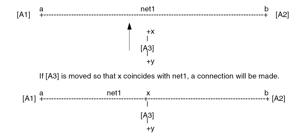 When the instance option is checked, all wire segments between the selected instance and the next solder dot, instance, or pin, will be rerouted (as shown in Figure 7-2).