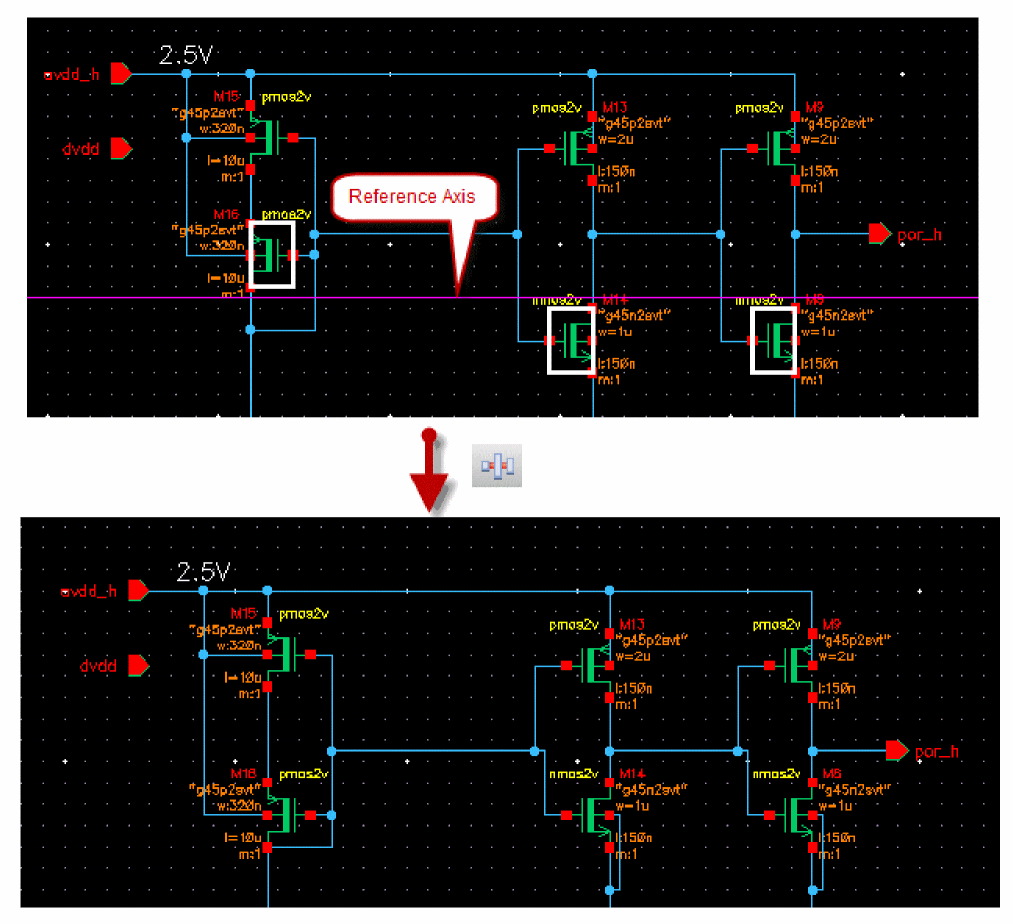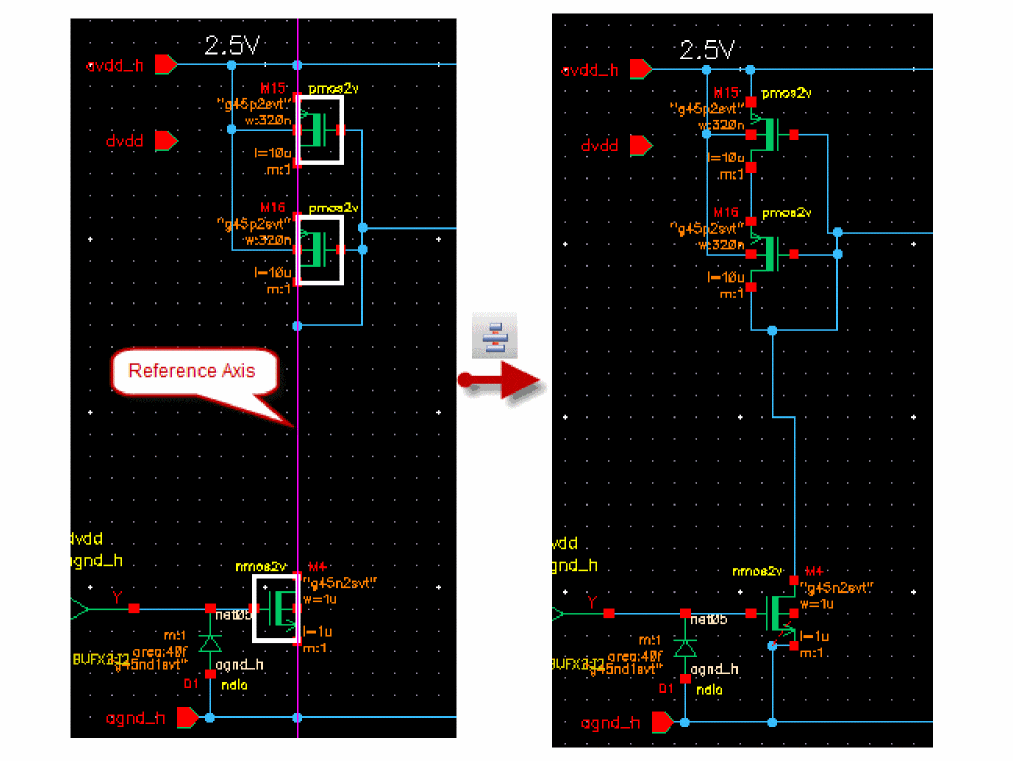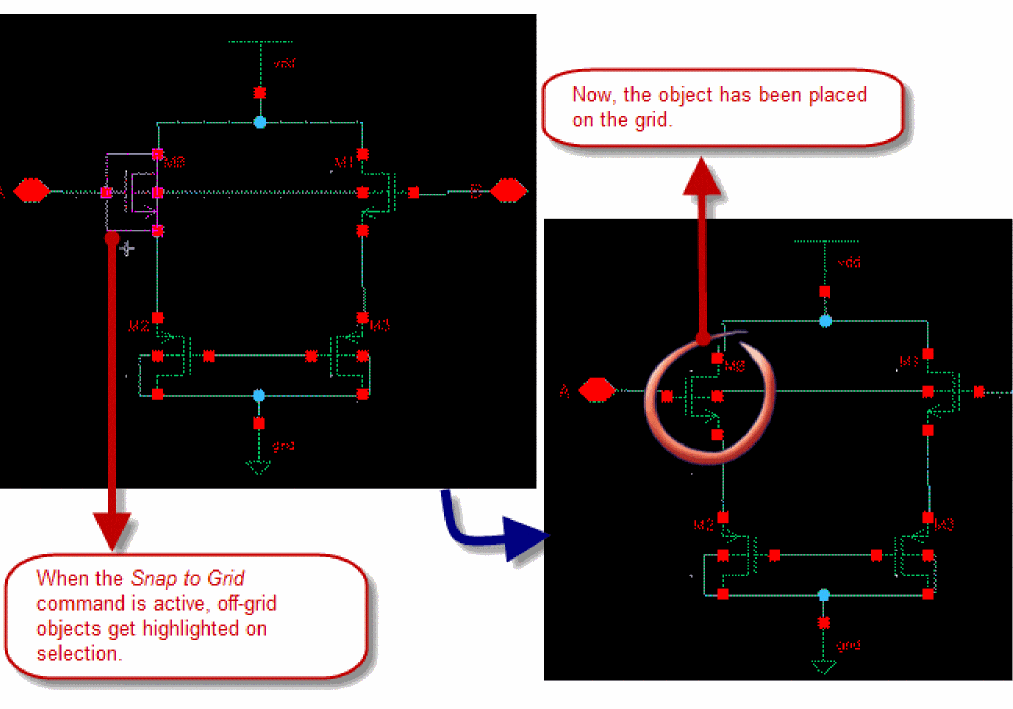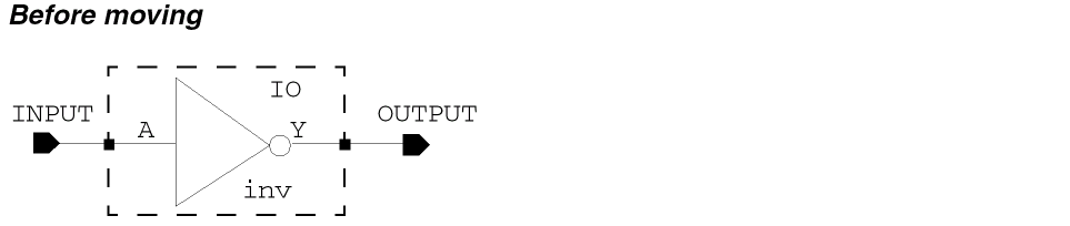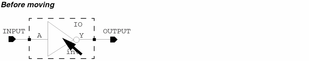 - Use extended selection to select an object (such as an instance, pin, or block) and associated wires so you can stretch them all at once.