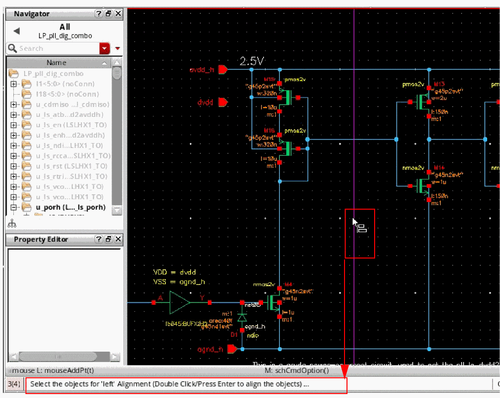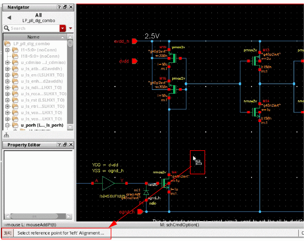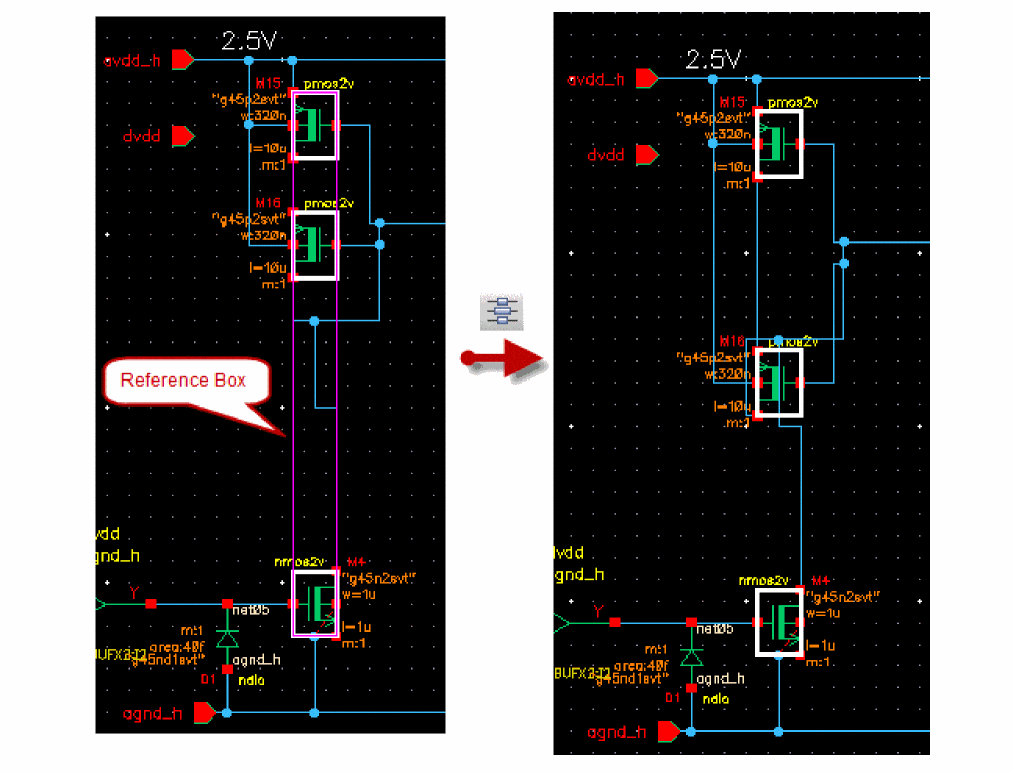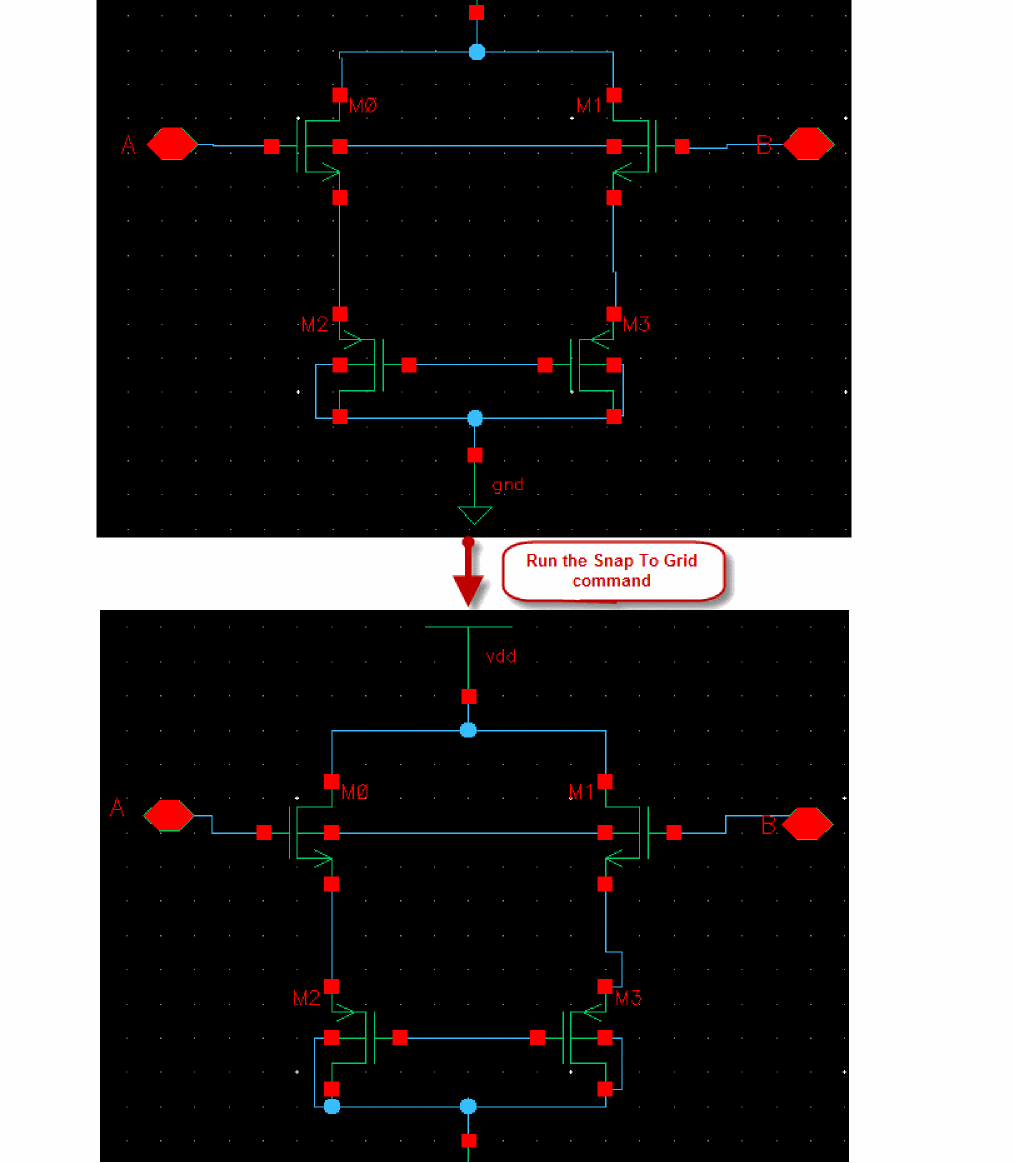 - Use extended selection to select an object (such as an instance, pin, or block) and associated wires so you can stretch them all at once.