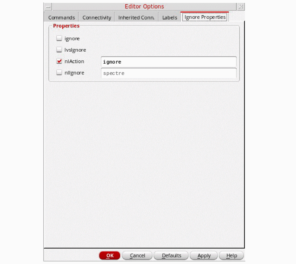 - cdsTerm labels: Displays the Net Name on schematic by default. You can choose to display the net name on schematic or on simulation from the drop-down list box.