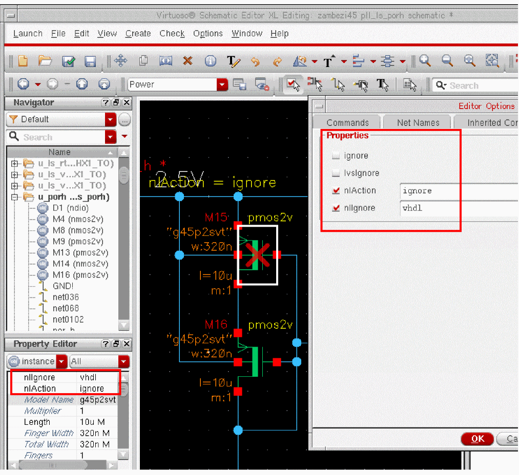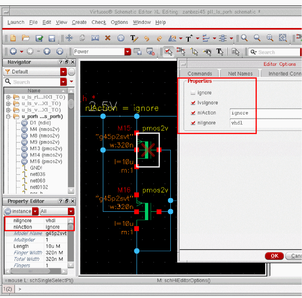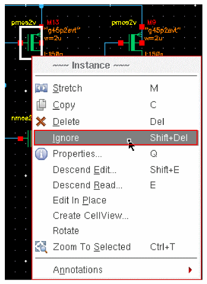 dbIsCellViewModifiedfunction returnsFALSEand the cellview attributemodifiedButNotSavedreturnsnilwhen queried withcv~>modifiedButNotSaved. - DFII on OpenAccess does not add checkpoints for failed edits to the undo stack.