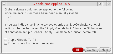 On the displayed dialog box, you can select the Apply Globals To All check box to apply the global annotation settings to all the instances.