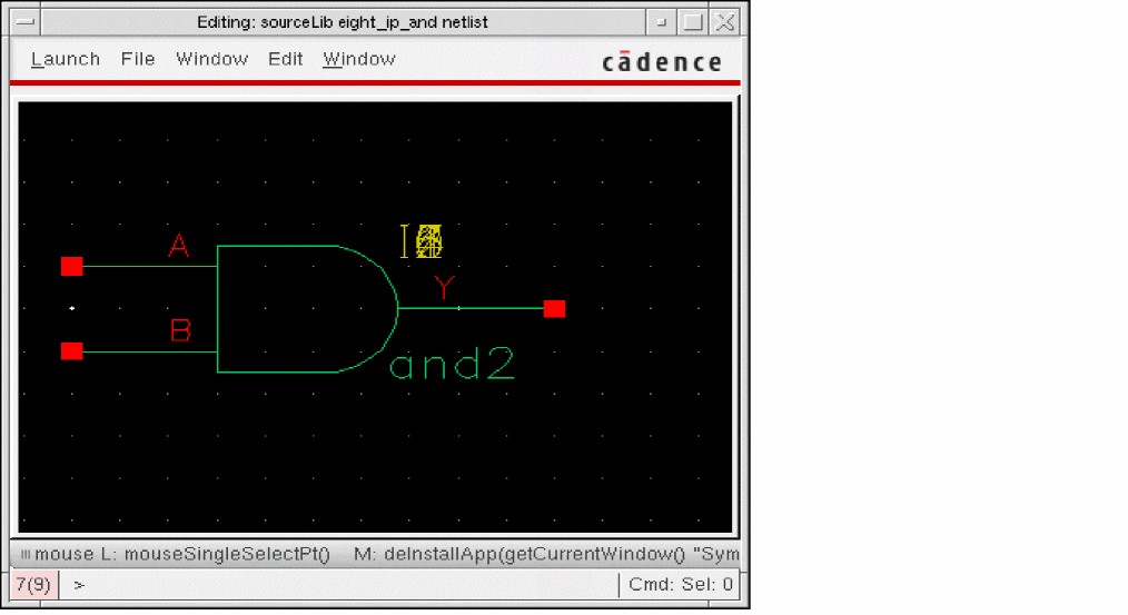 The following figure shows the netlist view of the eight_ip_cell cell existing in the sourceLib library: