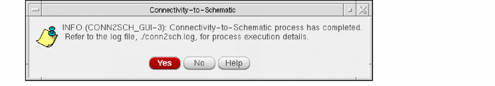 Wait until Connectivity-to-Schematic displays a completion message as shown in the following figure: