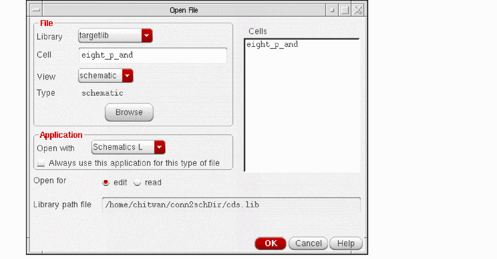 Opens Library Browser to enable you to select the target library, cell, and view names. If the target cell and view do not exist, you can use the Browse button to select only the library name. To specify new target cell and view names, you need to type them in the Cell Name and View Name fields.