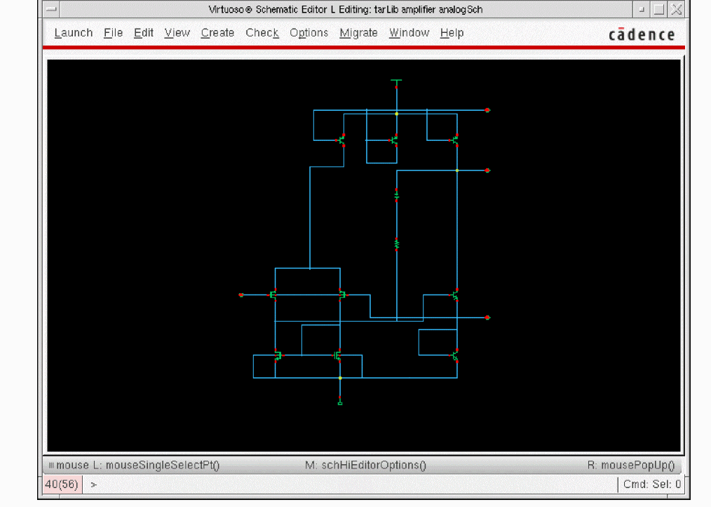 The following figure shows the analog schematic view of theamplifiercell in thetarLiblibrary: