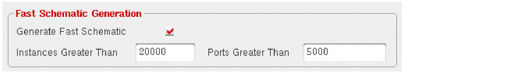 The options in this group box enable fast generation of the schematic when the design being imported contains a large number of instances or ports.