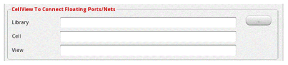 The fields in this group box connect the floating nets ports in the schematic with a cellview when the source cellview is a netlist view.