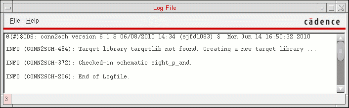 - Wait until Connectivity-to-Schematic displays the completion message that a schematic is generated in the specified target library.