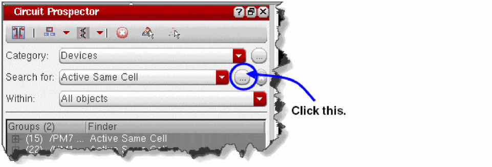 Click the ... (ellipsis) button to the right of the Search for drop-down list box in the Circuit Prospector assistant.