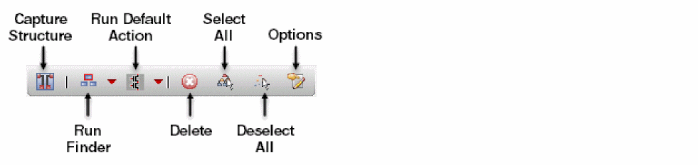 Currently selected finder identifies the type of constraints that are created and subsequently added to the Constraint Manager or the properties that are generated after selecting Run Default Action. This is because the default action is specified as part of the finder definition (see also Creating Finders).