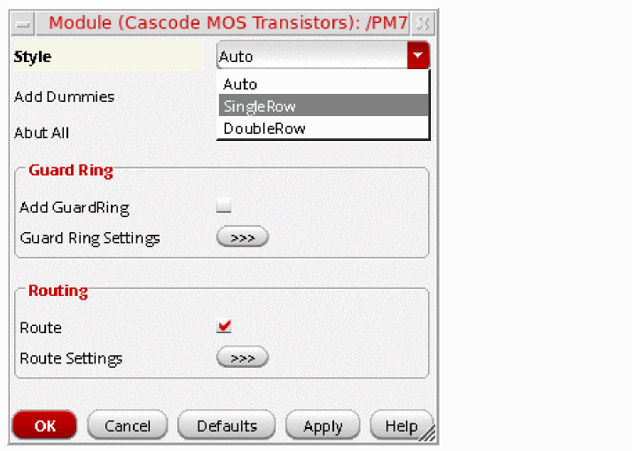 The second choice in the menu runs the default action in the cellview at the hierarchical level in which the finder found the result. In this case, constraints would be created in the cellview for I16/I22, and will have members MN1 and MN2.