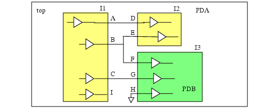 I1andI2belongs to power domainPDA,and instanceI3belongs to power domainPDB.Figure 6-1 Effect of the Specified Options on the Nets Selected