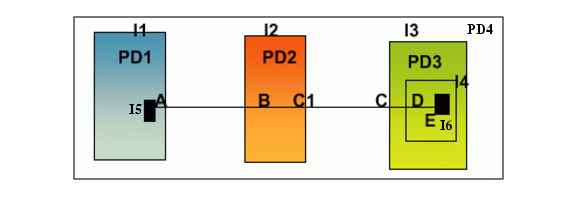 lsPD1applies to the net connected to pinI1/A. RulelsPD2applies to the net connected to pinI2/C1. RulelsPD3applies to the net connected to pinI3/I4/I6/E.All these pins are on the same physical net between pinsI1/A and I3/I4/I6/E. Because pin E is the leaf load pin of the physical net and the logical net connected to this pin has rule