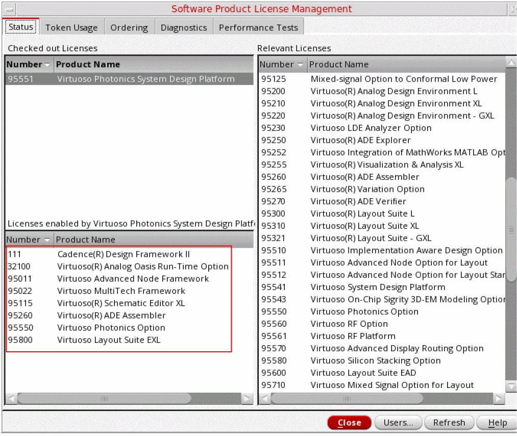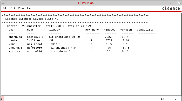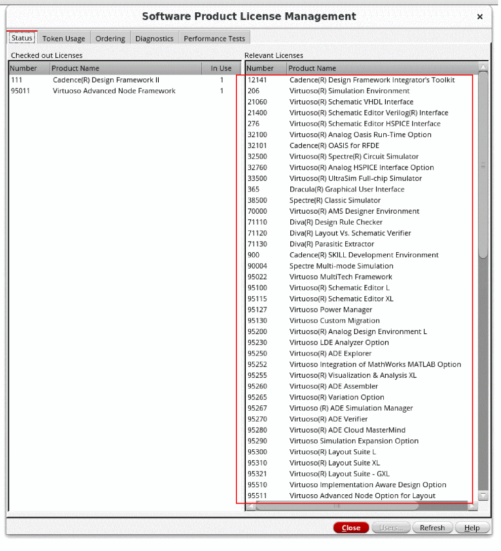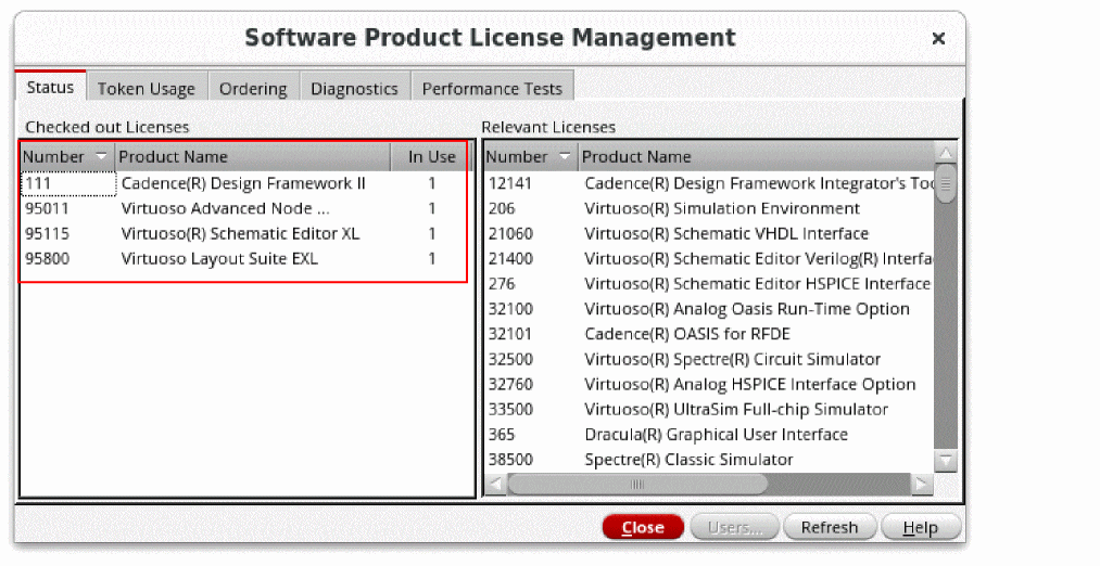 CDS_LIC_FILEand is extracted from more than one license server. If you do not have any licenses for a selected feature in any license file, the License Use form will display total and available licenses as “0”.