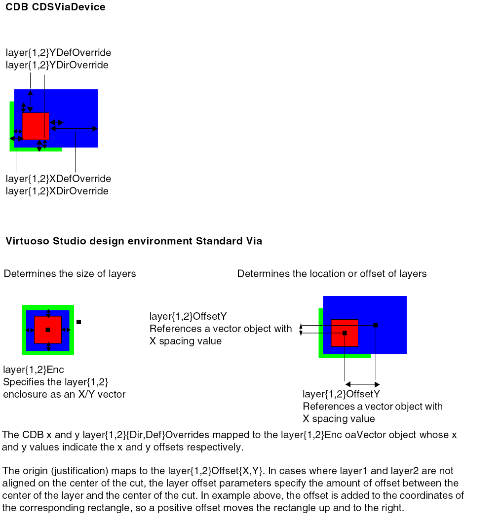 Change involves cdsViaDevice: maps to standardViaDefs if possible (see below), otherwise maps to a customViaDefs. For more information, see Mapping of CDB Devices. -