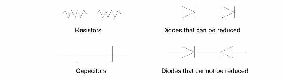 If you specify multiple reductions for the same device, all are applied iteratively. For example, if you request series and parallel reduction for resistors, both are applied to resistor networks, reducing them as far as possible.