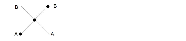 The labels A and B on the two shorted nets allow the program to isolate the short to the path between A and B as follows.